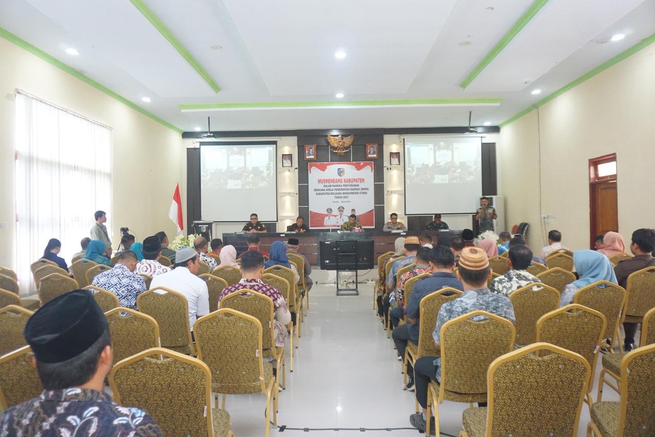 riiljejak.id —–» Musyawarah Perencanaan Pembangunan (Musrenbang) Kabupaten dalam rangka Penyusunan Rencana Kerja Pemerintah Daerah (RKPD) Kabupaten Bolaang Mongondow Utara Tahun 2027 resmi digelar, bertempat di Aula Pohohimbunga, Bapelitbangda, Kamis (5/3/2026).